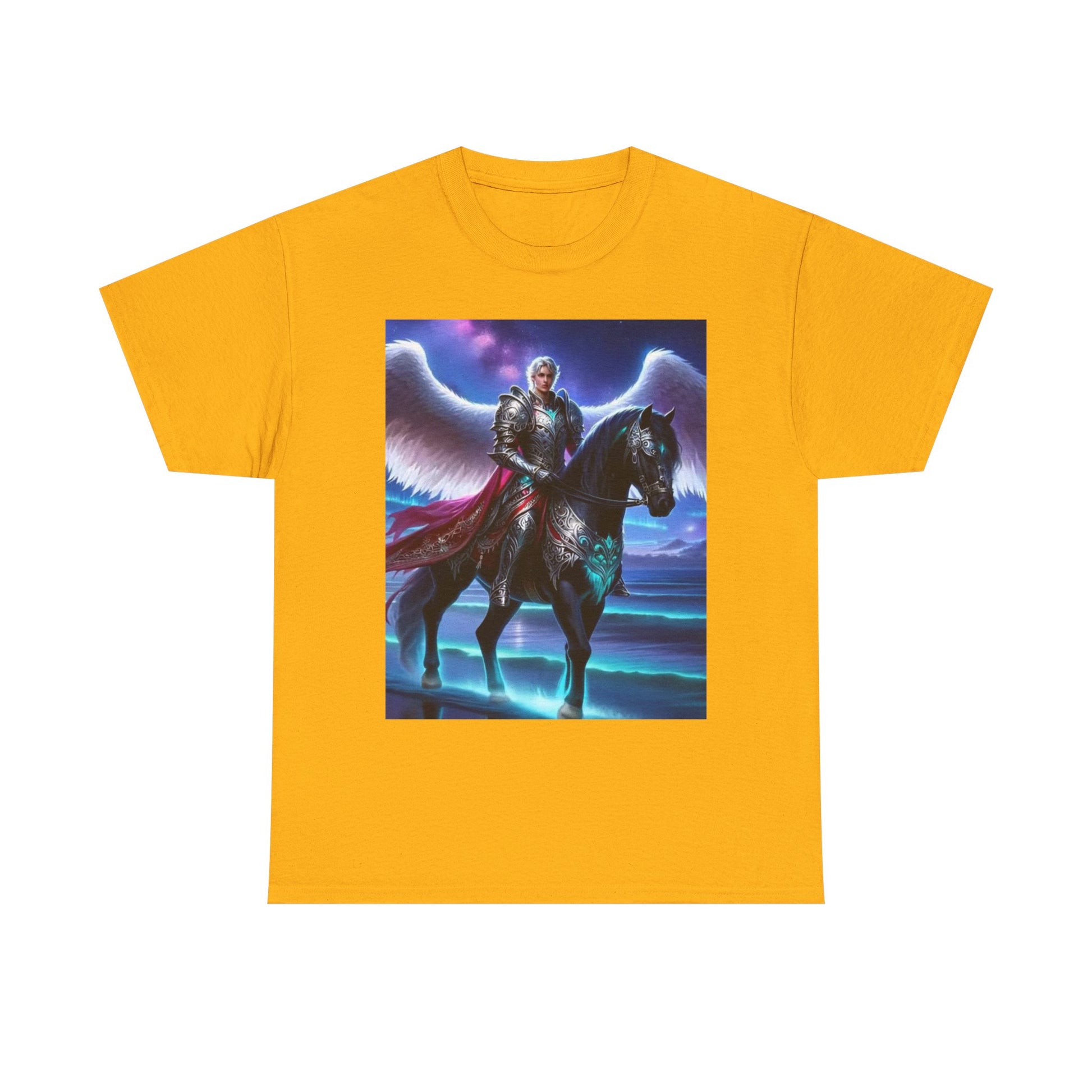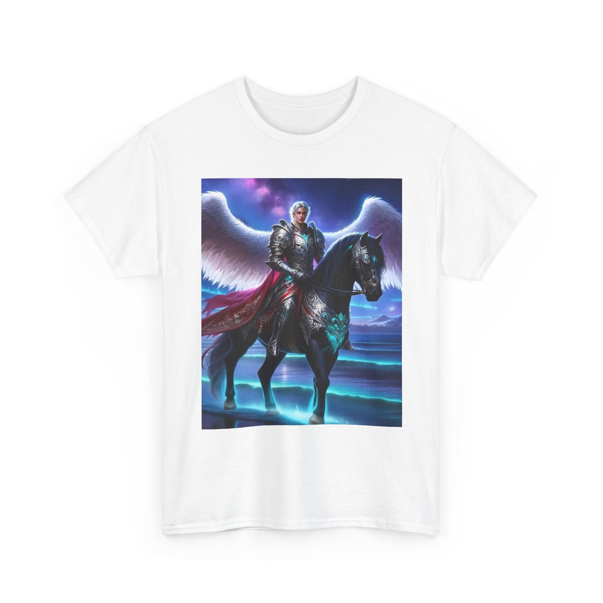 Step into the realm of twilight with the Moonlit Guardian Tee, where strength meets serenity beneath the stars. Featuring a celestial warrior with luminous wings astride a dark steed, this design captures the stillness of night and the silent power of divine protection. Bathed in moonlight and cosmic energy, itโs a symbol of vigilance, mystery, and grace in motion.