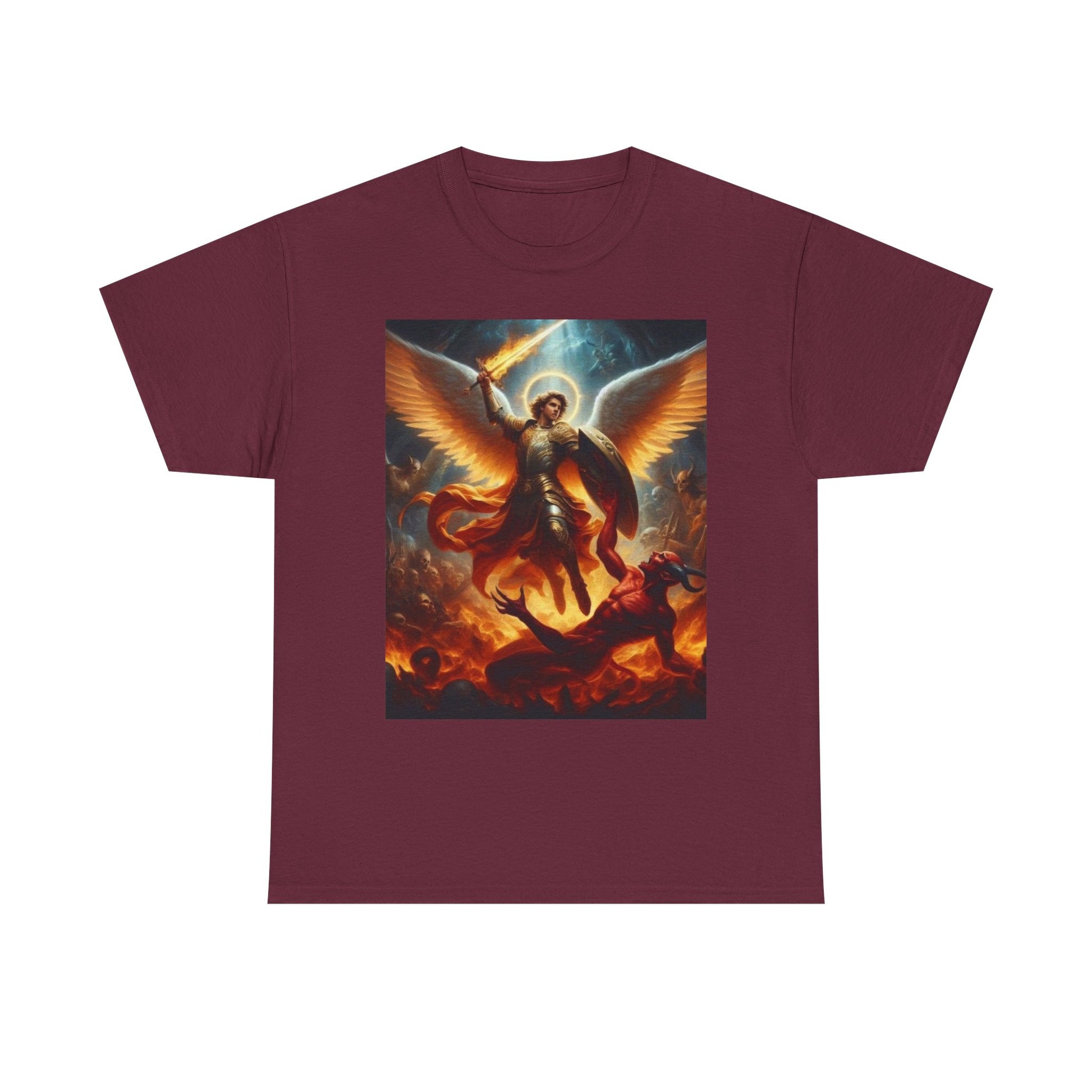 Unleash the fury of divine justice with the Triumph of Light Tee, a bold portrayal of celestial power triumphing over darkness. Featuring a radiant archangel descending with fiery wings and a blazing sword, this design captures the climactic clash between light and shadow. As chaos burns below, the warrior of heaven stands unshakenβan eternal symbol of truth, retribution, and unwavering purpose.
