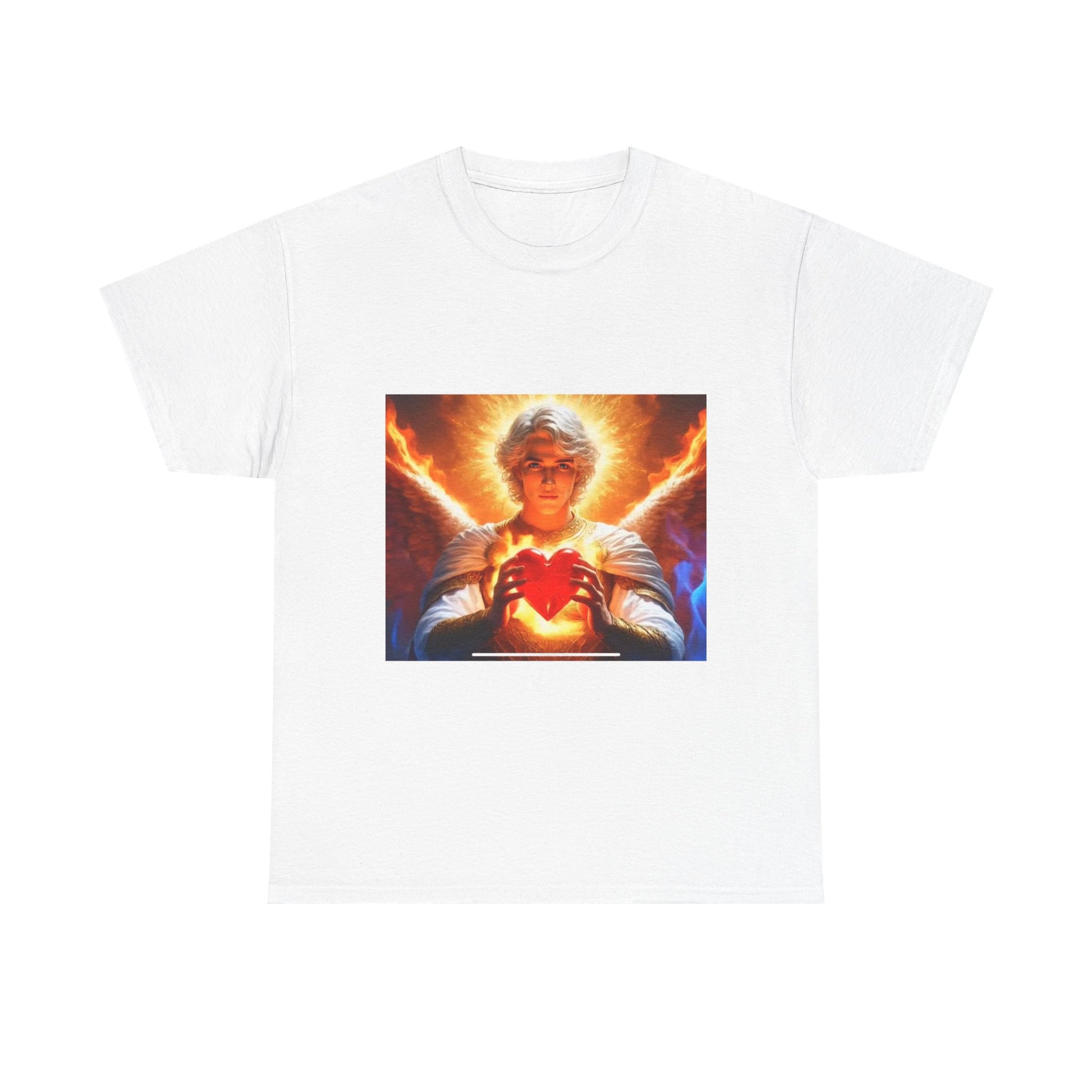Let your spirit shine with the Celestial Love Tee, a radiant tribute to the power of divine compassion and inner light. Featuring an ethereal figure cradling a glowing heart, this design channels the fierce serenity of angelic grace and unconditional love. Wrapped in flames of passion and purity, itโs a visual reminder that true strength is born from the heart.